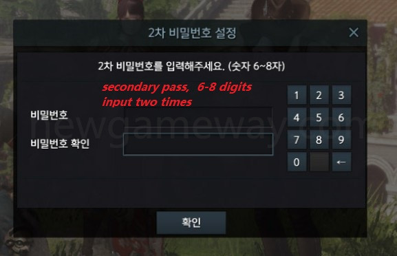 *After you create character, it will ask you set the secondary password (6-8 digits,) do not forget what number you set .
